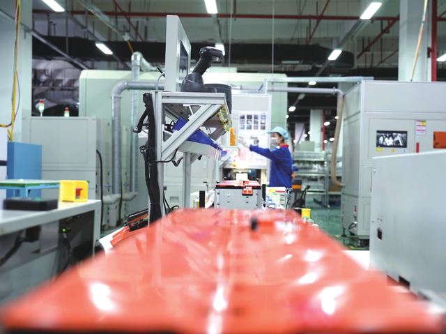 電池工廠內,工作人員在對