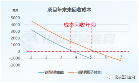 圖4:鈦酸鋰儲能及一般鋰離子儲能項目年末未回收成本對比