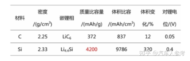 也需要把這個詞拆開來看,“硅碳負極”指的是負極材料,石墨負極有較高的穩定性,但石墨的能量密度比較低(理論克容量約372mAh/g);硅基材料具有很高的能量密度(理論克容量4200mAh/g),在負極加入硅后,能夠讓負極材料的理論克容量提升約10倍。