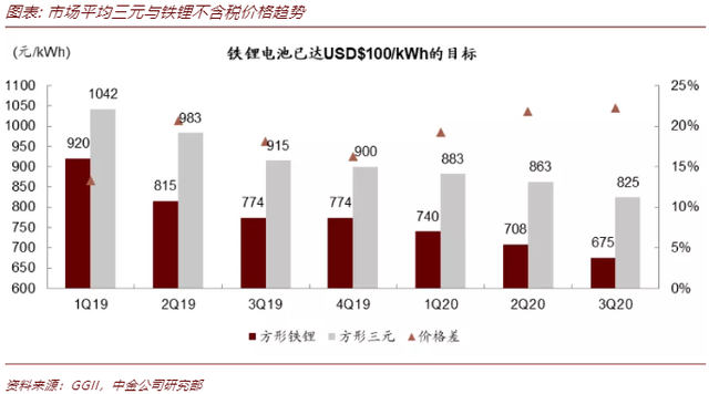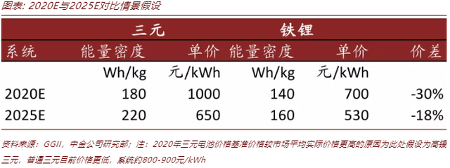 鐵鋰當前市場價格已低于700元/kWh,較三元低20%以上,在當前時點具備一定里程范圍內的強競爭力。