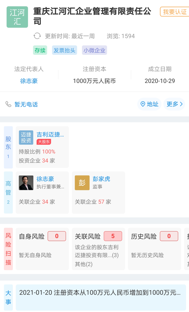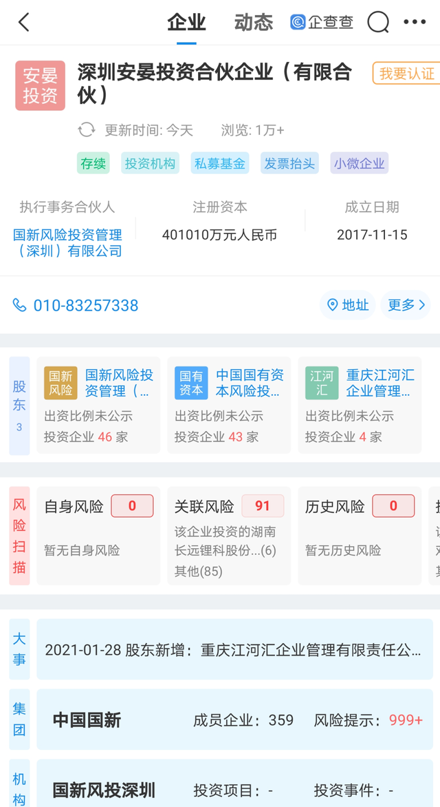 通過(guò)公開(kāi)工商資料查詢(xún)得知,2021年1月28日,上市公司孚能科技的第二大股東,占比19.1%的深圳安晏投資合伙企業(yè)發(fā)生工商變更,代表吉利的重慶江河匯成為其LP,占股比例為13.33%。