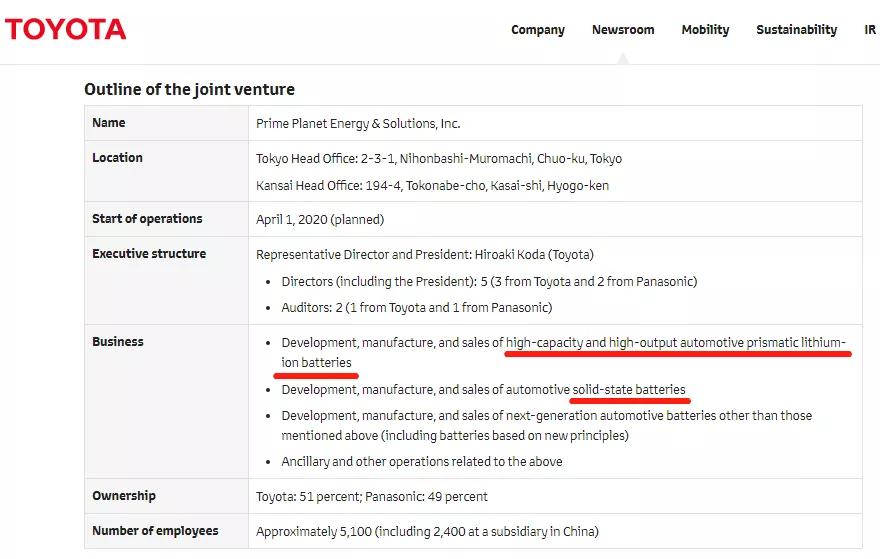 2020年雙方又新增了一家合資公司PrimePlanet Energy&Solutions,Inc.(以下簡稱“PPES”),以方形鋰離子電池、固態電池生產及研發為主。