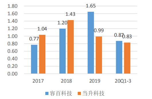 但從盈利能力來看,當升科技明顯更好。2019年,當升科技的毛利率為18%,2020年上半年穩定在17%,但同期容百科技毛利率僅為16%,2020年上半年更是下滑至12%的低位。在單噸凈利潤方面,在2019年兩家公司相差不大的背景下(分別為容百1.2萬/噸和當升1.1萬/噸),2020年上半年和3季度,當升的單噸凈利潤顯著高于容百,以3季度為例,當升單噸凈利潤為1.4萬/噸,而容百僅有0.6萬/噸。