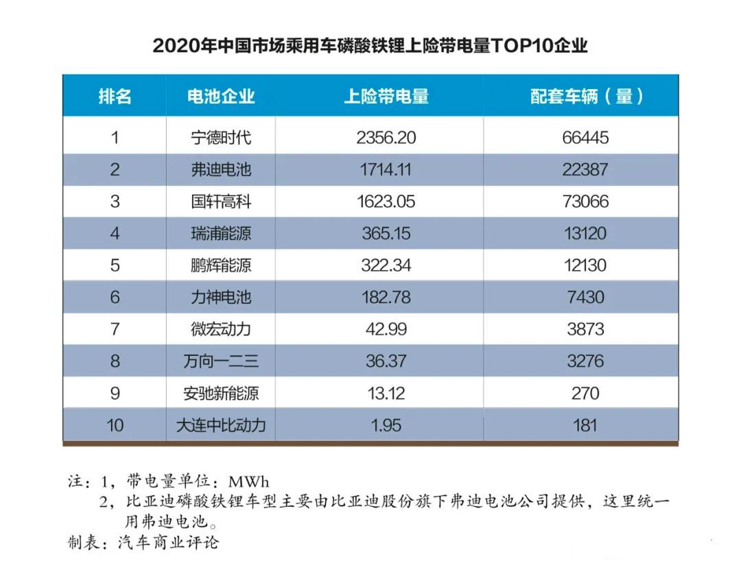 在磷酸鐵鋰領(lǐng)域,2020年,寧德時代以上險帶電量2356.20MWh的成績拿下國內(nèi)磷酸鐵鋰乘用車市場冠軍,這得益于它為25658輛國產(chǎn)特斯拉Model 3配套。這也是寧德時代連續(xù)第四年拿下磷酸鐵鋰全球出貨量第一名。