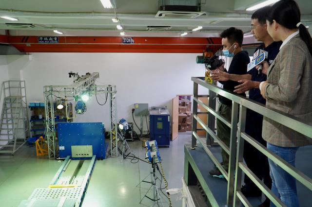 廣州海關(guān)工作人員展示講解新能源汽車電池的模擬高速碰撞測(cè)試。