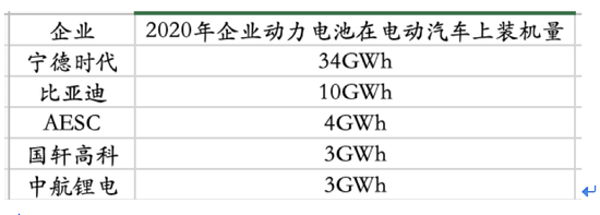 2020年全球動力電池在電動汽車上的裝機量Top 9企業中,中國企業占了5席:寧德時代、比亞迪(002594.SZ)、AESC(遠景能源)、國軒高科(002074.SZ)、中航鋰電。