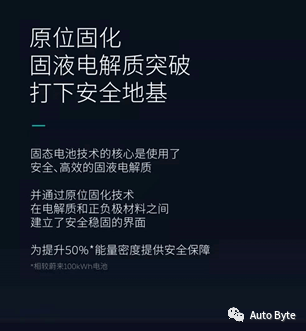 今年一月,蔚來在微信公眾號發表了一篇名為《蔚來發布150kWh固態電池》的文章,然而文中對電解質的描述是「安全,高效的固液電解質」,這與固態電池的定義「使用固體電極和固體電解質的電池存在出入」。事后蔚來創始人李斌也公開承認,所謂的固態電池其實是固液混合電池,雖然較原有鋰電池技術有突破,但也并不是革命性的突破。