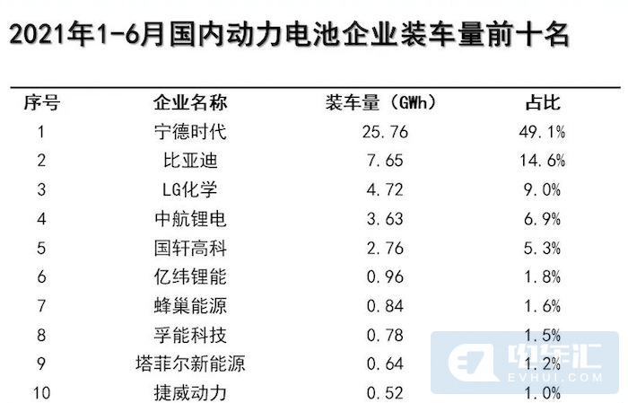 近幾年雖然有新入局者,但動(dòng)力電池領(lǐng)域市場(chǎng)格局已經(jīng)基本確定。數(shù)據(jù)顯示,今年1-6月,我國(guó)新能源汽車市場(chǎng)共計(jì)53家動(dòng)力電池企業(yè)實(shí)現(xiàn)裝車配套,較去年同期減少4家,排名前3家、前5家、前10家動(dòng)力電池企業(yè)動(dòng)力電池裝車量分別為38.1GWh、44.5GWh和48.3GWh,占總裝車量比分別為72.6%、84.8%和92.0%。
