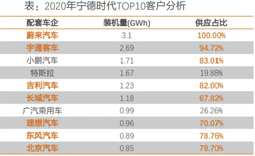 寧德時(shí)代2020年前十客戶