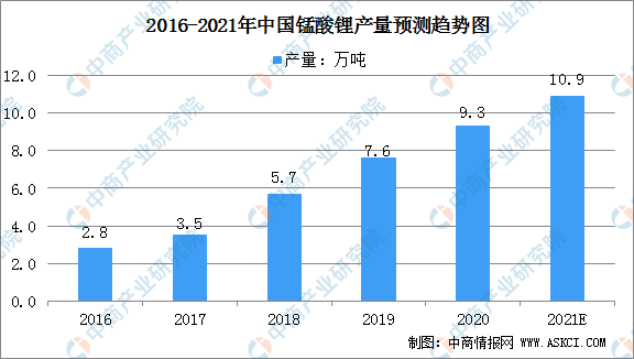 錳酸鋰正極材料是傳統(tǒng)鋰電池正極材料,在物流車,以及在注重成本、對續(xù)航里程要求相對低的微型乘用車領(lǐng)域具有一定市場份額。2020年中國錳酸鋰產(chǎn)量達9.3萬噸,同比增加22.3%。預(yù)計2021年我國錳酸鋰產(chǎn)量可達10.9萬噸。