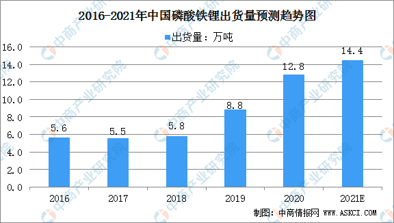 數(shù)據(jù)顯示,2020年我國磷酸鐵鋰材料出貨量達12.8萬噸,相比上年增加4萬噸,增長45.4%。預(yù)計2021年我國磷酸鐵鋰材料出貨量可達14.4萬噸。