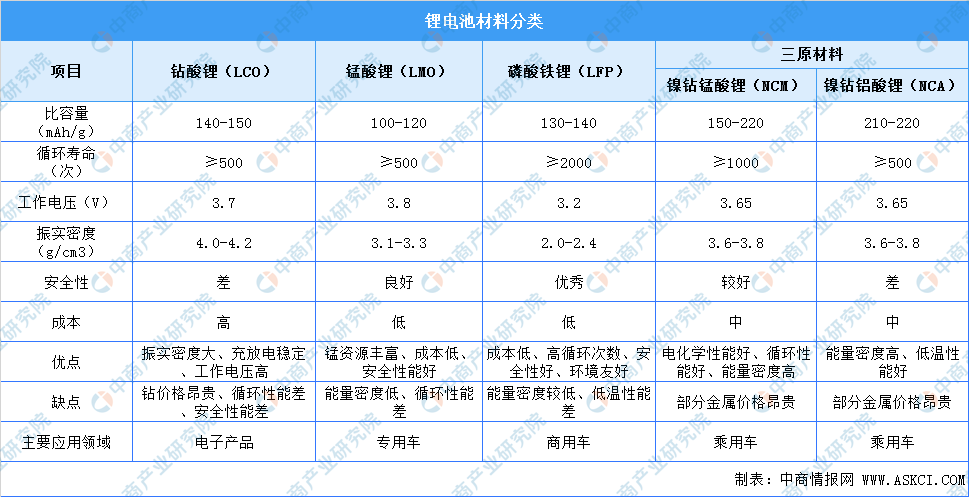 正極材料的性能是制約鋰電池容量的重要因素。主要的正極材料有:鈷酸鋰、錳酸鋰、磷酸鐵鋰、三元材料等。