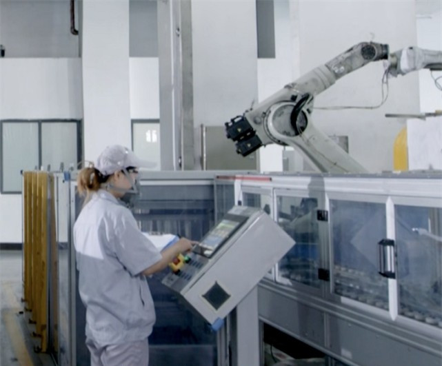 電池生產車間,裝料、出料等生產流程在機器人的操作下有條不紊地進行著,再過不久,這些剛出產的鋰離子