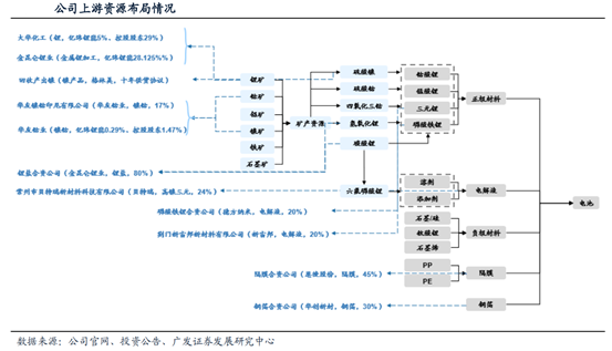 這個戰(zhàn)略布局不可說不廣不深,包括上游最核心的原材料鋰礦、鈷礦、鎳礦;中游四大電池零部件正極、隔膜、電解液、銅箔全部涉及,預想成為行業(yè)龍頭的雄心可見一斑。