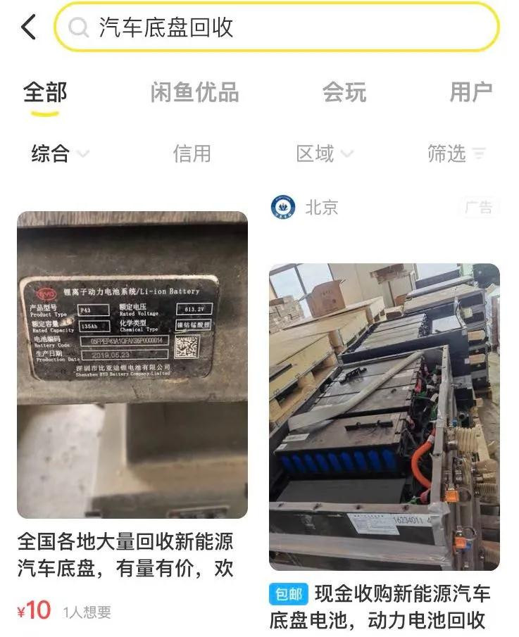 如何在網上“尋找”退役動力電池回收商?科技日報記者在百度、淘寶甚至閑魚等網絡平臺嘗試了多個關鍵詞搜索無果后,“汽車底盤回收”終于浮出水面。搜出來的封面圖片大多是堆放密集的動力電池模組,被回收商的電話號碼和微信號覆蓋,商品標價相差甚大,但在詳情介紹中都表示可在全國范圍內上門回收各類動力電池,“價格量大從優”。