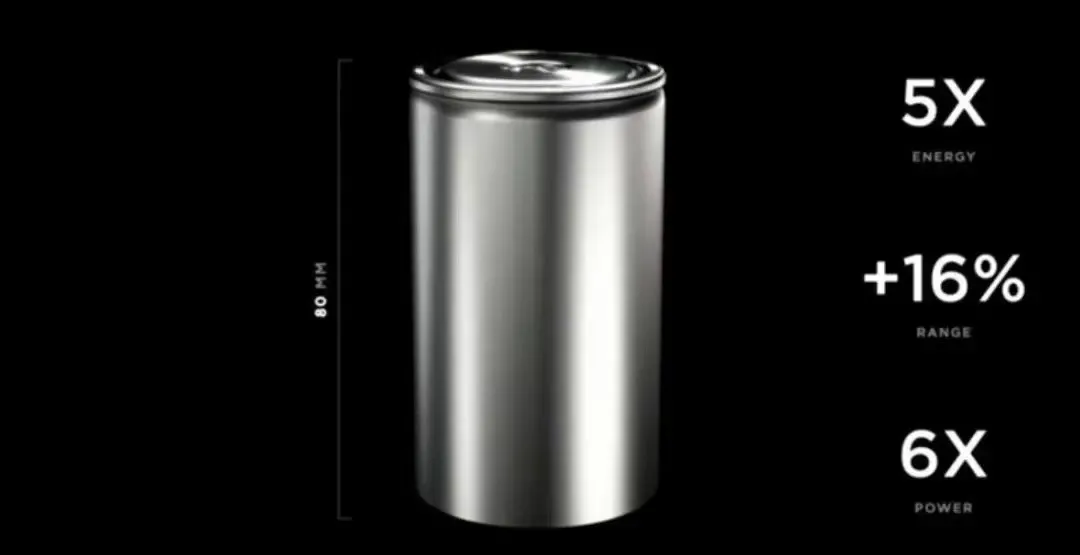 4680電池最早在2020年9月特斯拉的“電池日”上亮相,彼時被特斯拉CEO埃隆·馬斯克 (Elon Musk)稱之為電池技術(shù)上“巨大的突破”。按照他的說法,4680電芯的單體能量提高5倍,整車?yán)m(xù)航里程增加16%,電力相比有極耳電池提升6倍,功率輸出提升6倍。