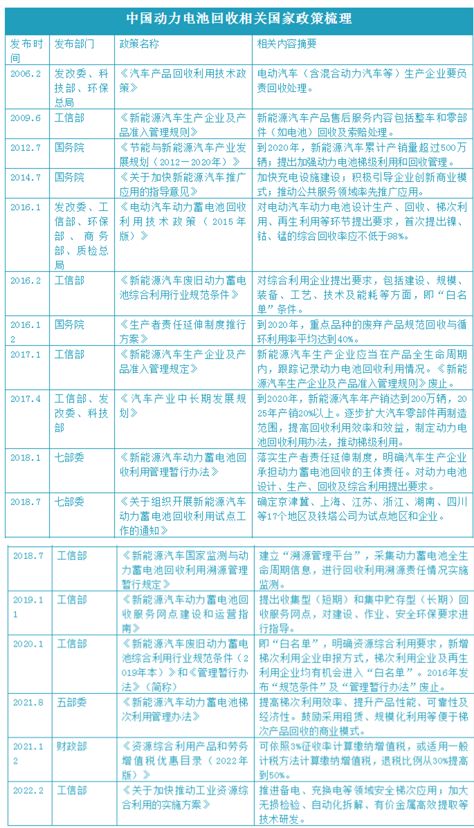2018年9月5日、2020年12月16日、2021年12月16日,工信部先后發(fā)布了《新能源汽車廢舊動(dòng)力蓄電池綜合利用行業(yè)規(guī)范條件》企業(yè)名單公告,第一批、第二批、第三批“正規(guī)軍”相繼誕生。
