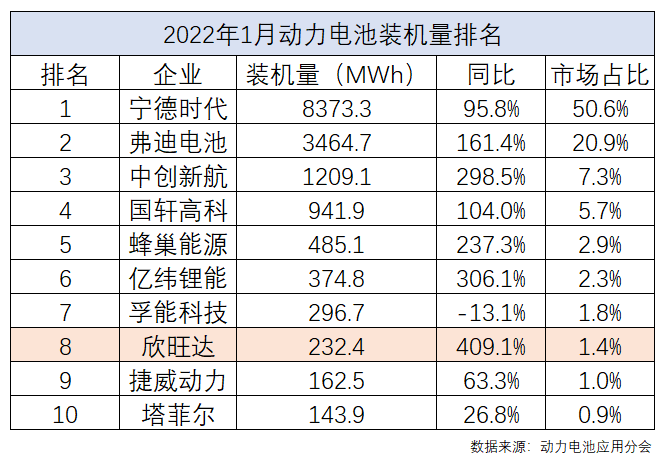 這一次”蔚小理“正式入股欣旺達,作為動力電池王者,素有”寧王“之稱的寧德時代無疑是最受傷的一個。數據顯示,2021年,國內動力電池企業裝車量前十的企業分別為寧德時代、比亞迪、中創新航(中航鋰電)、國軒高科、LG新能源、蜂巢能源、塔菲爾新能源、億緯鋰能、孚能科技與欣旺達,其中寧德時代裝車量為80.51GWh,占比高達52.1%,霸主地位顯露無疑。