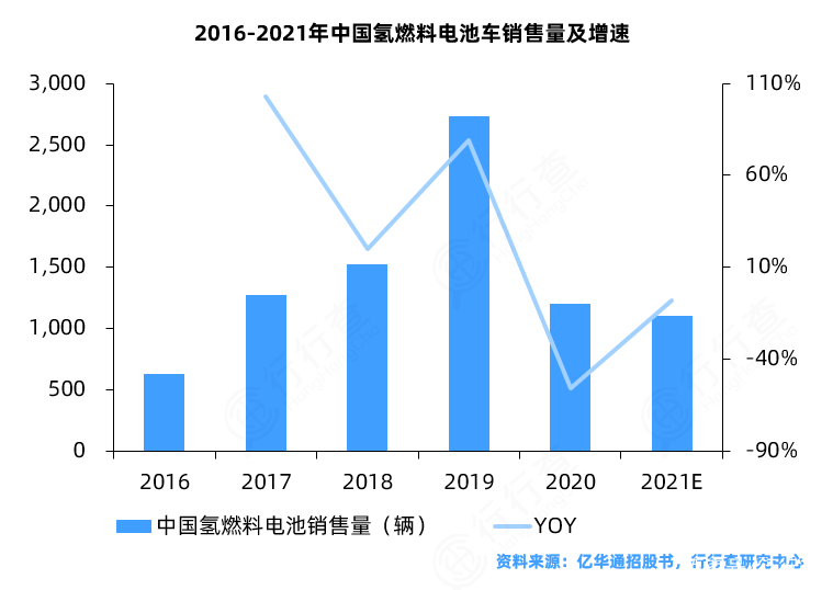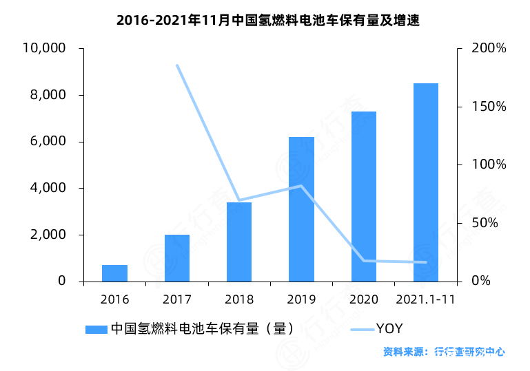 我國(guó)氫燃料電池車產(chǎn)業(yè)已基本涵蓋氫燃料電池整車、氫燃料電池系統(tǒng)、氫燃料電池電堆及零部件領(lǐng)域,基本建成以整車制造及氫燃料電池系統(tǒng)為主的氫燃料電池車供應(yīng)鏈和產(chǎn)業(yè)鏈體系,尤其是在系統(tǒng)、電堆等方面已基本實(shí)現(xiàn)了國(guó)產(chǎn)化供應(yīng)。2016-2020年我國(guó)氫燃料電池車保有量逐年攀升,近兩年受到疫情影響保有量增速有所下滑,根據(jù)中汽協(xié)及新能源汽車國(guó)家監(jiān)測(cè)與管理平臺(tái)公布的統(tǒng)計(jì)數(shù)據(jù)顯示,截至2021年11月我國(guó)氫燃料電池汽車保有量為8,452輛。2016-2019年中國(guó)氫燃料電池汽車銷量逐年上升,2020年以及2021年銷量下滑的主要原因是疫情以及補(bǔ)貼政策轉(zhuǎn)向及示范城市群的開展導(dǎo)致銷量下降,預(yù)計(jì)產(chǎn)品銷量會(huì)延遲到2022年放量。截至2021年11月底,2021年我國(guó)氫燃料電池車銷售量超1,000輛,市場(chǎng)進(jìn)入商業(yè)化初期。