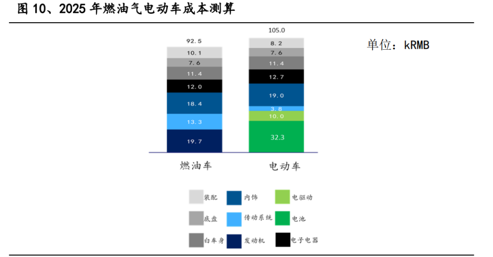 1. 成本較高,奧緯咨詢認為當下電動車的制造成本比燃油車高出了 45%,而動力 電池是整車成本高的主要原因,燃油車的發動機和輔助系統成本為 3000 歐元, 而電動車電池的成本則高達 8000 歐元;