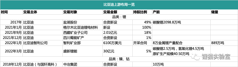 比亞迪的鋰礦投資相對寧德時代來說,數量和金額上都更為保守。