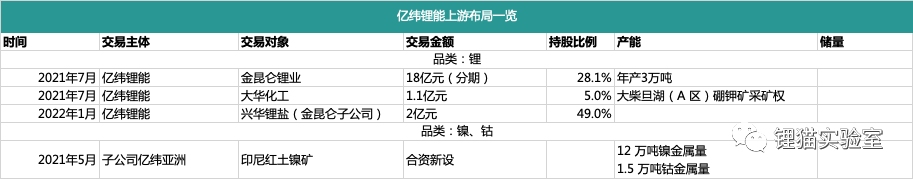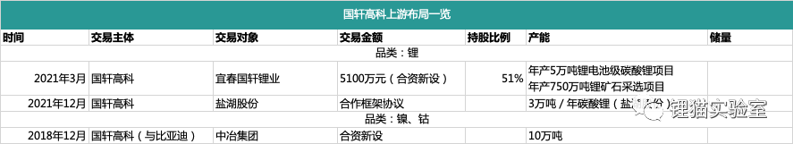 作為國內的動力電池老四,國軒高科對于鋰的投資較為均衡,開始時間也更晚,2021年3月份才迎來第一次對于鋰礦資源的布局。