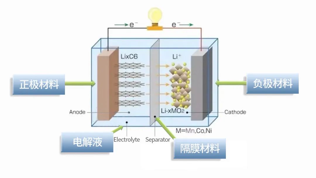 鋰離子電池結構及工作示意圖,圖片來源于網絡
