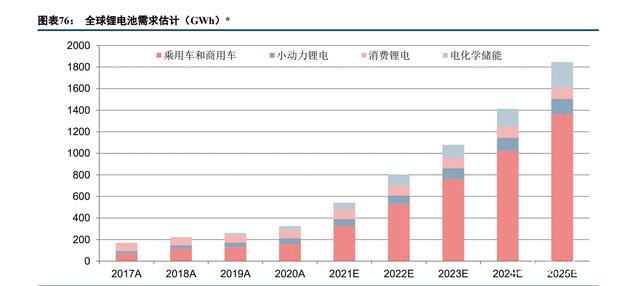 全球鋰電池需求趨勢預測圖,來源:中信建投證券