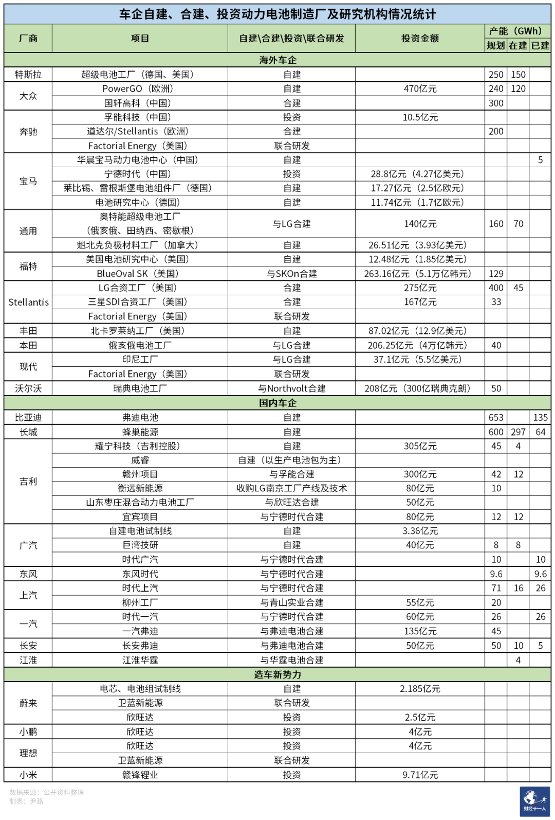 除了上述這幾家車企,絕大部分車企很難在規(guī)模上做到與電池企業(yè)相匹敵。而且即便是自建產(chǎn)能,也需要依賴電池企業(yè)協(xié)助。比如大眾在建的3家工廠,負責具體建設(shè)的分別是歐洲的Northvolt,ACC和中國的國軒高科。除了自建,與電池企業(yè)合資建廠也是車企造電池的主流形式。所以車企造電池,不論自建還是合建,最終都要依賴電池企業(yè)。