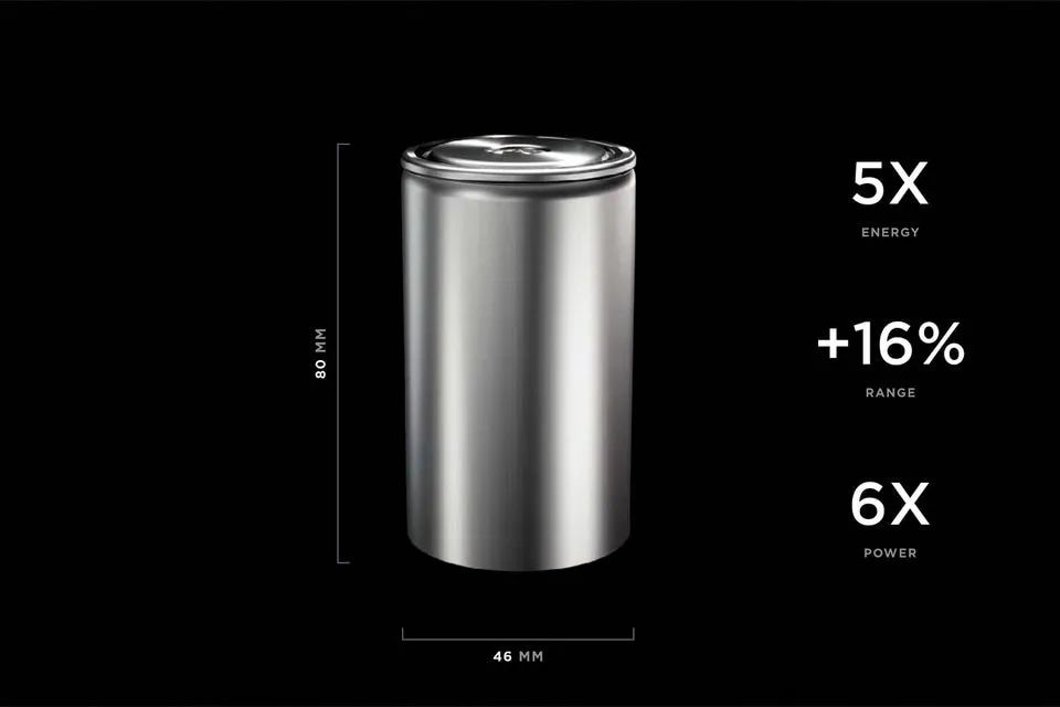 2020年,特斯拉向股東介紹4680電池。當時預計體積是2170電池的5倍,儲能原來的6倍,續(xù)航里程增加16%。(Tesla / Handout / REUTERS)