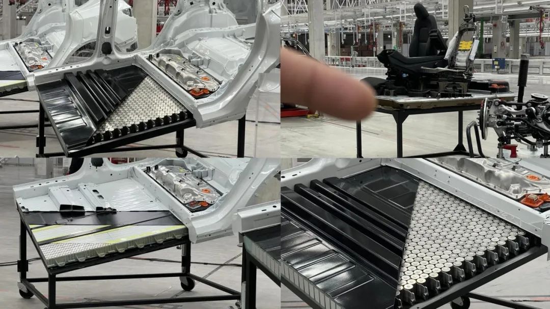 效率的另一個來源是,更大的電芯外殼也更結實。特斯拉現在可以用粘合劑將電池粘合在一起,形成一個剛性的蜂窩狀電池組,然后直接連接到Model Y的內部車身結構。這消除了將電池捆綁成更大的模塊,然后安裝到傳統(tǒng)電池組的中間步驟。
