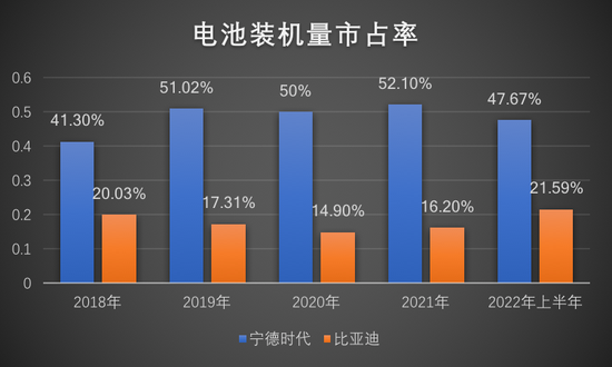 動力電池研發廠商們爭奪的,不僅僅是國內乃至全球的市場份額,更是未來在整個產業鏈上的話語權。寧德時代老大的地位受到了影響——中國汽車動力電池產業創新聯盟發布的數據顯示,2022年上半年寧德時代動力國內裝機量四年以來首次低于50%。