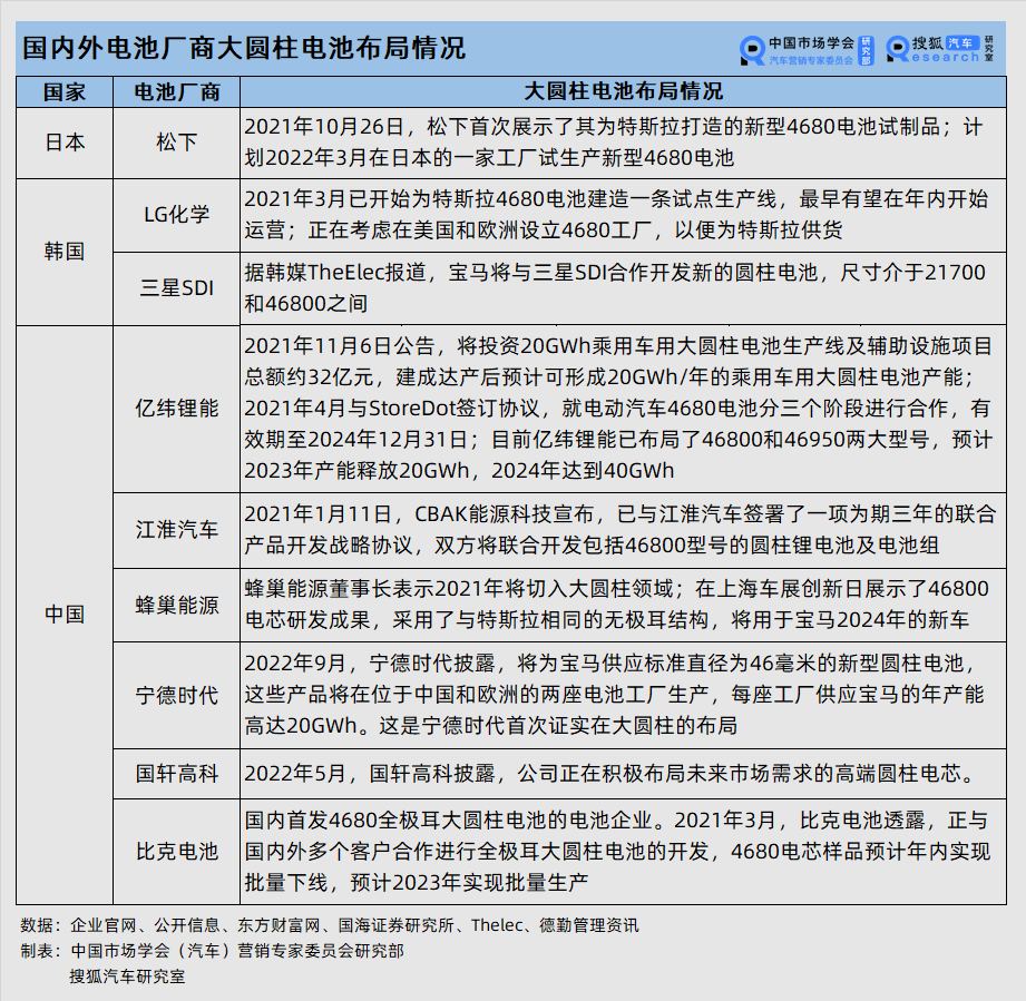 目前,從儲備上看,寧德時代拿下了寶馬大圓柱定點,“寧王”終于入局大圓柱,緩解市場焦慮。億緯鋰能著重把握大圓柱電池的高安全性和對高性能材料的適配性,有意耕耘中高端市場,在荊門擴產大圓柱20GWh,預計今年底到明年陸續投產。