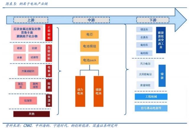 國盛證券認(rèn)為,鈉離子電池在新能源電池同行中性價(jià)比較高,未來將被應(yīng)用至大規(guī)模儲(chǔ)能以及低速交通工具領(lǐng)域。其中大規(guī)模儲(chǔ)能主要包括風(fēng)力電站、太陽能電站以及家庭儲(chǔ)能;低速交通工具主要包括物流車、農(nóng)具車、電動(dòng)車以及電動(dòng)船。