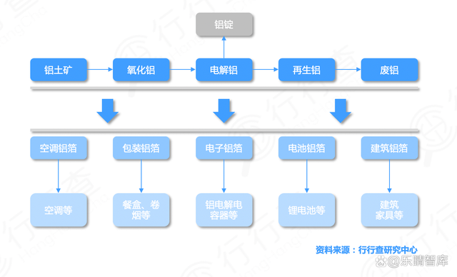 鋁箔是用鋁材制作而成的箔,屬于鋁加工行業(yè),其上游為電解鋁。通過(guò)向電解鋁企業(yè)采購(gòu)鋁錠,經(jīng)過(guò)鑄軋/熱軋→冷軋→箔軋等主要工序后生成鋁箔。
