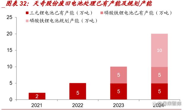 由于退役動力電池供給量不足,正規回收企業多數產線不飽和運行。根據天奇股份 投資者交流,目前國內拆解回收有效產能為年處理廢舊電池 60 萬噸左右,實際回 收廢舊鋰電池共 23.5 萬噸,產能存在一定程度的不匹配。