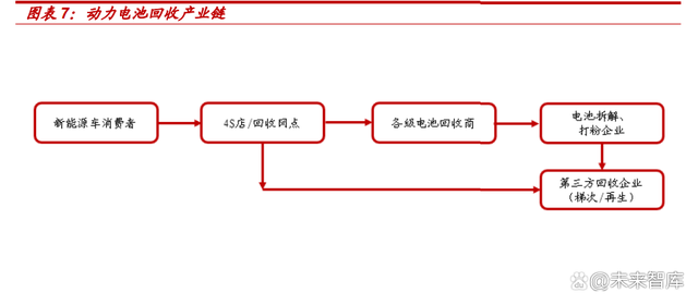整個電池回收行業包括主要主體為:整車生產商、電池生產商、銷售者、消費者、 梯次利用者、回收利用者。