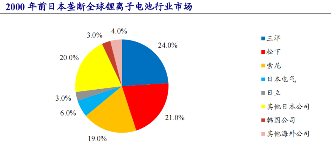 但是20年前,海外鋰離子電池市場競爭中,并沒有中國的身影,日韓才占市場主導地位。