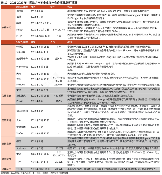 2021-2022年期間,中國不少動力電池企業仍在追加海外建廠計劃,億緯鋰能、蜂巢,以及國軒高科等。