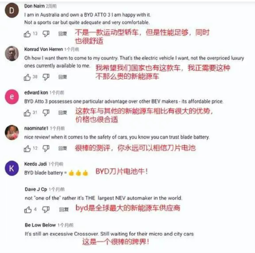 比亞迪在電池方面的優秀表現不僅征服了國內消費者,在歐洲也成為最受歡迎的新能源汽車,從外國網友的評論可以看出比亞迪受歡迎的程度。歐洲當地主流電視臺DW對比亞迪的評價是“比亞迪超過了特斯拉成為最暢銷的中國品牌”、“超級安全的中國電動車”、“比亞迪超越大眾”……這一切都是來自比亞迪電池技術的優勢。