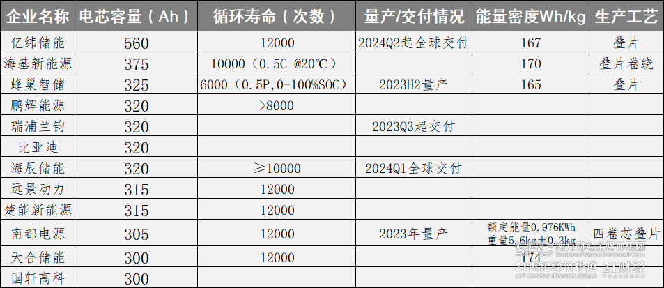 值得一提的是,有多家電芯廠商推出的超300Ah的大電芯采用了疊片工藝。例如,億緯儲能推出的LF560K大容量電芯,采用的便是疊片工藝。蜂巢智儲也推出了325Ah儲能專用疊片電芯;百川股份下的海基新能源推出了首款375Ah大容量儲能電芯采用的是疊片式卷繞工藝;南都電源發布的305Ah的電芯采用的是四卷芯疊片工藝。