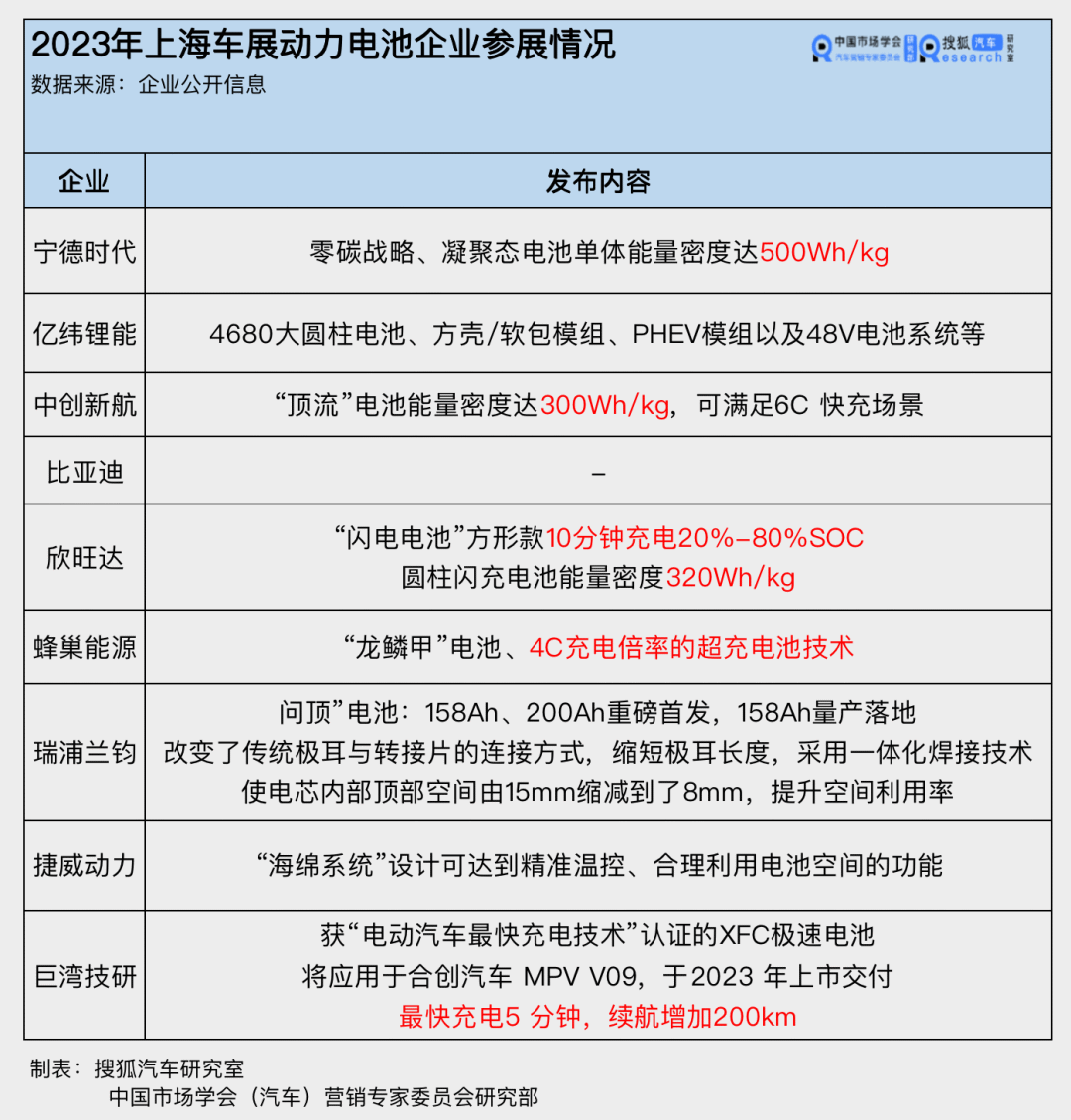今年的上海車展,不少TOP10的動力電池廠商都積極參展,像寧德時代、比亞迪、中創新航、欣旺達、億緯鋰能、蜂巢能源、瑞浦蘭鈞等企業都設立了展臺。
