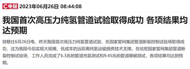 我國首次高壓力純氫管道試驗近日在國家管網集團管道斷裂控制試驗場取得成功,這為我國今后實現大規模、低成本的遠距離純氫運輸提供技術支撐。