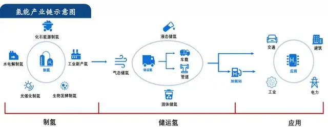 據了解,氫能產業鏈分為上游制氫、中游儲運氫及下游氫能應用,涉及環節較多、應用領域廣泛,其中儲運環節是連接上游供給及下游需求的關鍵,是整個產業鏈環節中的必不可少的一環。