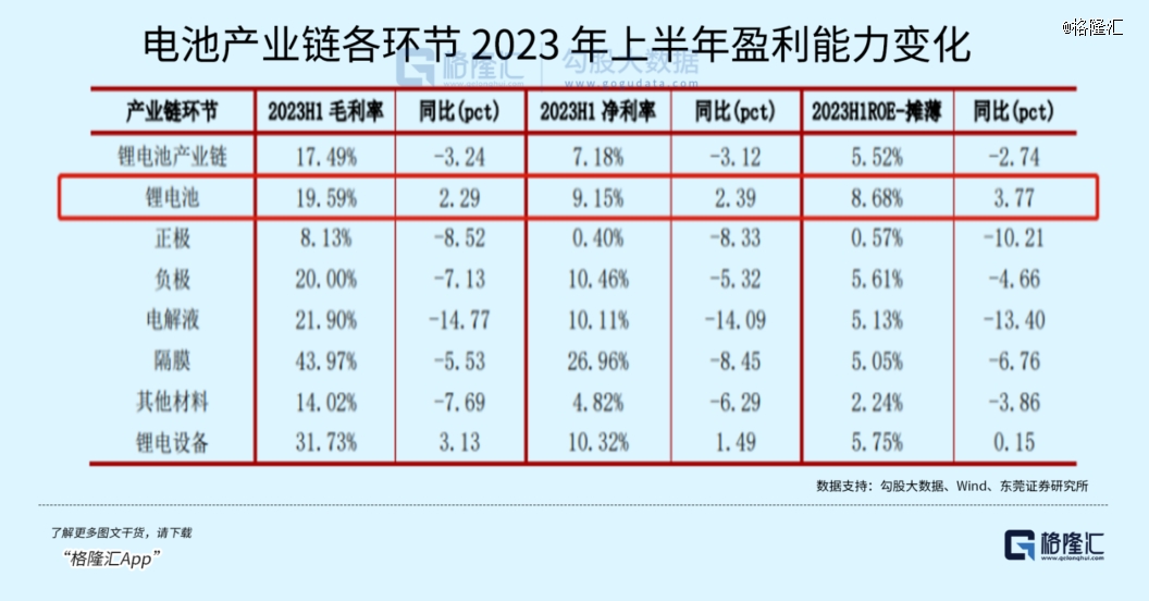 但從營收增速、利潤增速、毛利率變化等盈利維度比較,利潤向鋰電池環節轉移的趨勢是比較清晰的。