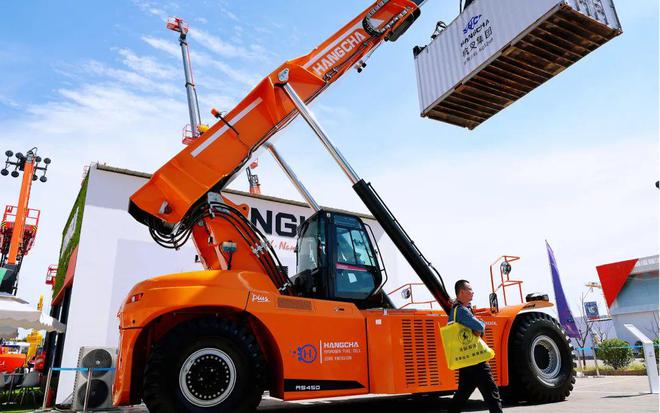 國產首臺45噸氫燃料電池正面吊亮相展會。中環報記者王亞京攝
