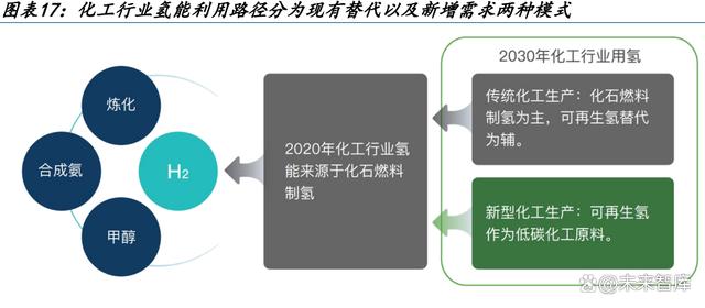 原料用氫:主要場景包含鋼鐵、化工等領域。氫氣是重要的工業氣體,氫元素的強 還原性被用于多種化學反應,是眾多化合物的基礎元素之一。化工行業需要用氫制 備甲醇、合成氨等多種產品,冶鐵需要利用氫氣作為還原劑,多種高端材料的制造 在生產流程中均需要使用氫氣進行加工。