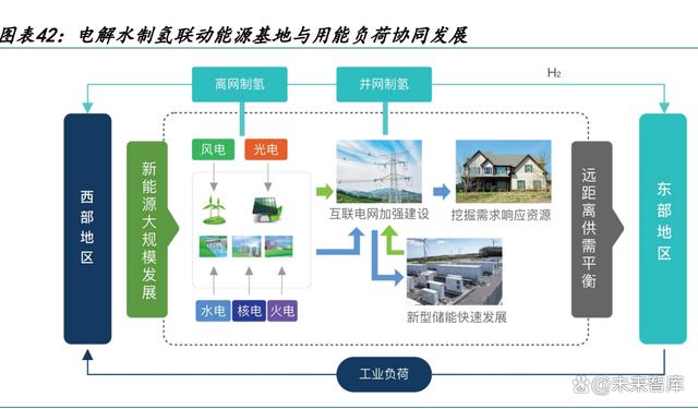 上游側耦合風光設備電解水制氫,可解決可再生能源電消納及上網問題。電消納及上網 問題隨光伏和風電裝機規模高增逐步凸顯,風光耦合電解水制氫可實現風光裝機無地域 限制。近十年來,我國光伏和風電成本快速下降,為裝機規模快速提升奠定了基礎,但 風光發電波動性的特點制約了其進一步擴大規模,因而配儲以平抑波動性。現階段大部 分可再生能源發電終局為上網,儲能大多僅作為可再生能源電力上網前電源側波動性的 暫時儲存電力的方案,在光伏和風電大規模裝機至一定規模后,上網及電消納將成為可 預見性需要解決的問題。因此,將風光設備耦合電解槽制取氫氣儲能,氫氣再作為能源 使用,將解決儲存能量的大規模時空轉移特性,實現交通網與能源網的深度耦合。