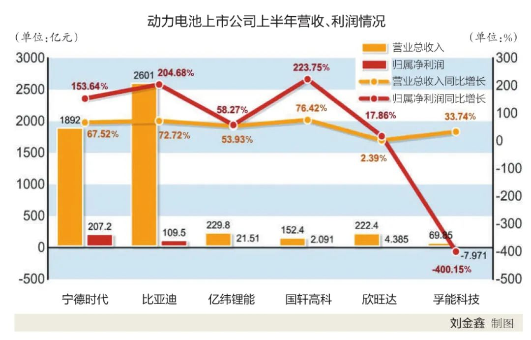記者參加行業會議時,多位嘉賓提到,經歷了碳酸鋰價格“過山車式”的走勢后,多數動力電池企業從“壓力山大”轉為利潤增長。隨著動力電池上市企業半年報的公布,嘉賓演講的內容也得到了證實。大多數上市動力電池公司營業總收入同比增長為2位數,這得益于我國新能源汽車產業繼續快速發展。