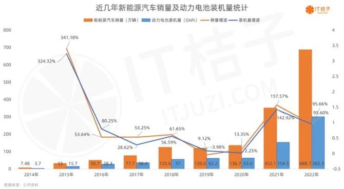 相對應,動力電池裝機量也從2014年的3.7GWh升至2015年的15.7GWh,增速324.32%。
